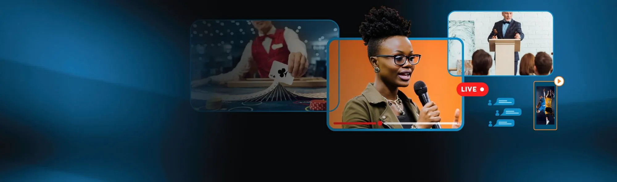 Reach your global audience with real-time video that’s fast, reliable, and fully under your brand. We combine over 25 years of expertise in advanced video technology with a flexible self-service platform — so you can start streaming instantly, with the tools you need for control, insight, and growth.