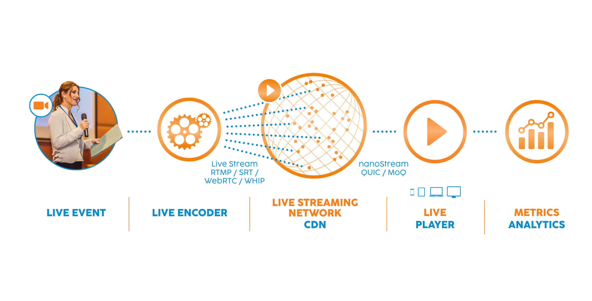 At nanocosmos, we’ve made this possible by integrating AI-driven captions generation into our comprehensive real-time video streaming platform. Our real-time captioning solution empowers businesses to expand their reach, improve accessibility, and enhance the live viewing experience – all without compromising on speed, accuracy, or ease of use, following our vision of real-time video that simply works.